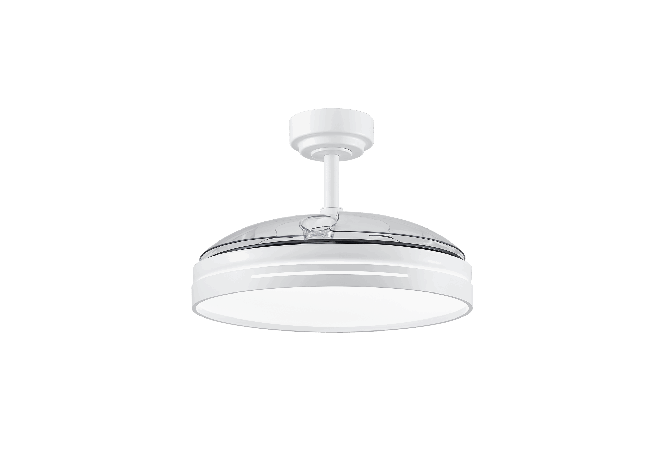 Tiene seis velocidades ajustables. Tecnología led integrada con una potencia de 72w, con 3 temperaturas de luz (3000-4000-6000k) y 7200 lúmenes. Control de aire verano o invierno. Su medida es de 32/44, 5×48 centímetros con las aspas plegadas y de 32/44, 5×108 centímetros con las aspas desplegadas. Incluye dos tijas de 12, 5 y 25 centímetros. Mando a distancia incluido con memoria de color incorporada y temporizador 1/2/4 h. Modelo disponible en color blanco, níquel, negro y cuero, y también en dos tamaños.